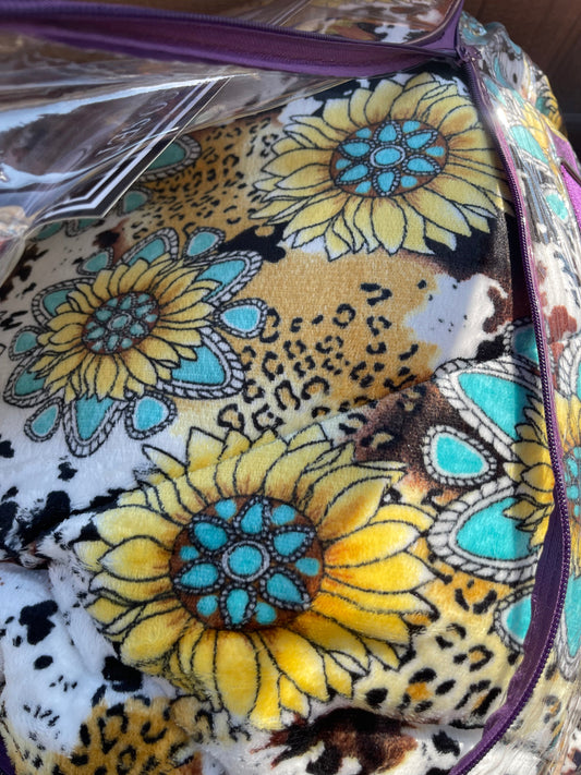 Cow Sunflower Sherpa Bedding Set