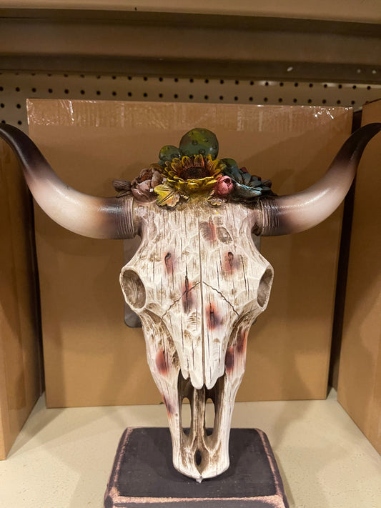 Sunflower Cactus Cowskull Statue