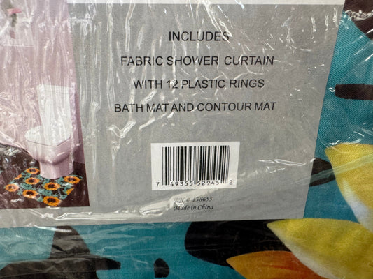 Turquoise Cow Print Sunflower 15 Piece Bathroom Set
