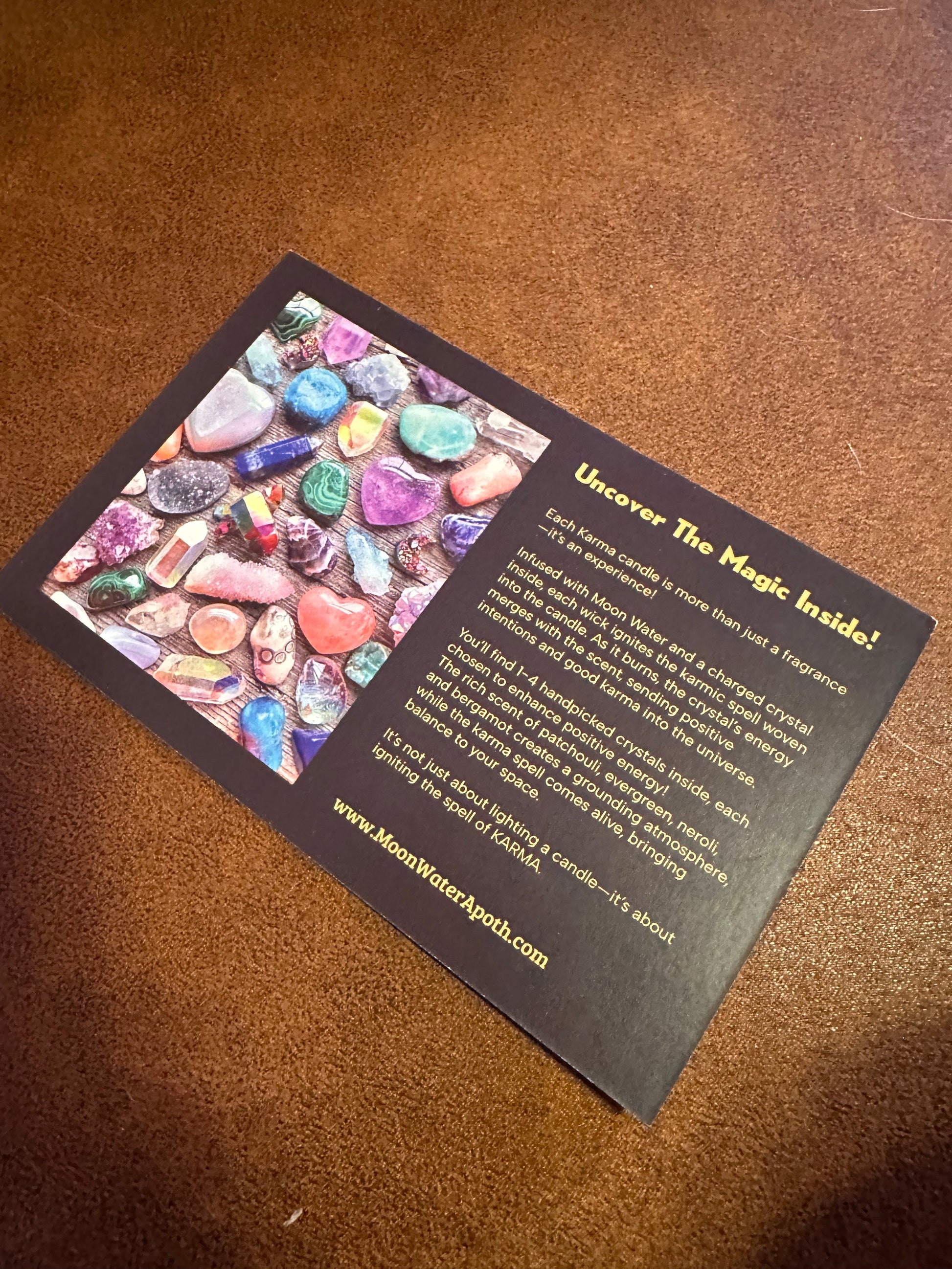 KARMA CANDLE - HIDDEN CRYSTALS INSIDE! Organic Soy 8oz, Insanely long lasting!