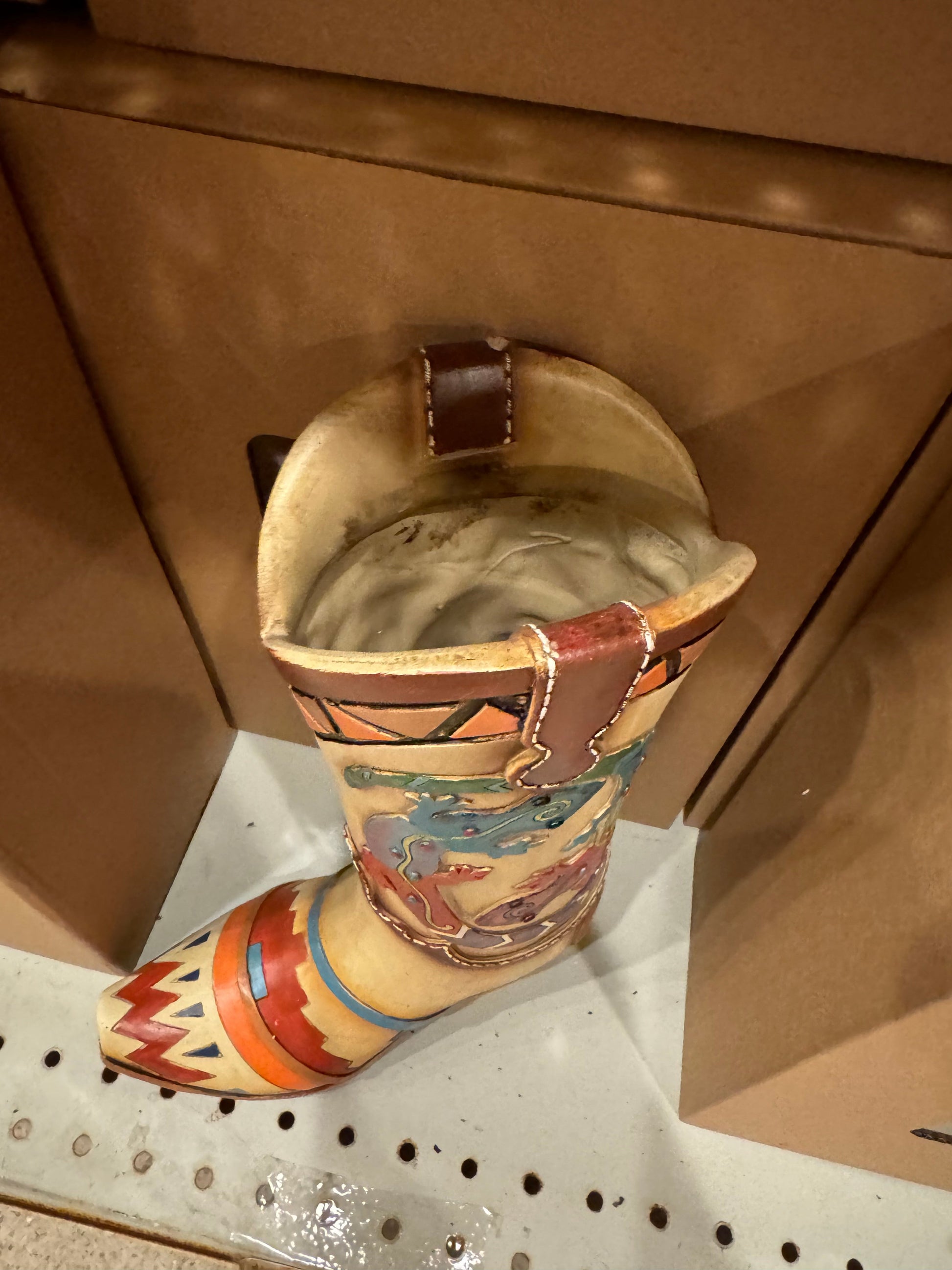 Expertly crafted with durable resin, this Lizard Gecko Boot Vase adds a touch of whimsy and charm to any space. Measuring 12 inches, it is perfect for displaying your favorite flowers or as a standalone décor piece. A must-have for any nature lover or home décor enthusiast.