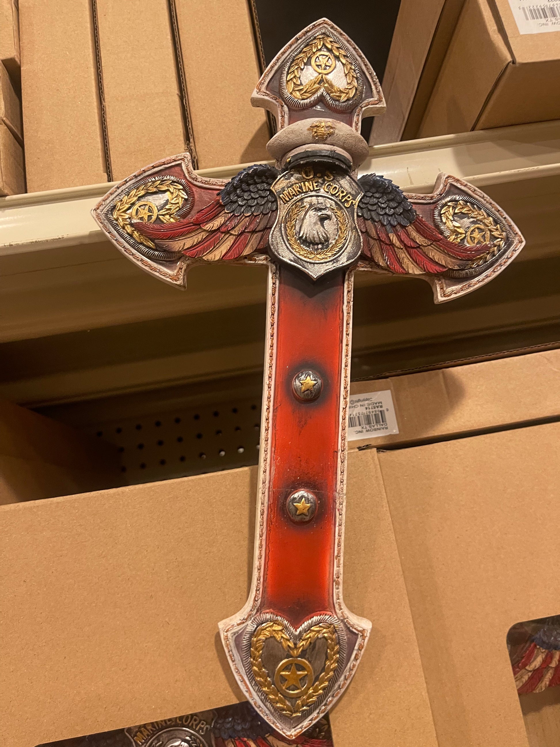 Expertly crafted from durable resin, this Marine Corps Cross features a claw tooth hanger for easy installation on any wall. Measuring at 14" by 8.5", this cross is a powerful symbol of strength, courage, and sacrifice, making it a meaningful addition to any home decor or military collection.