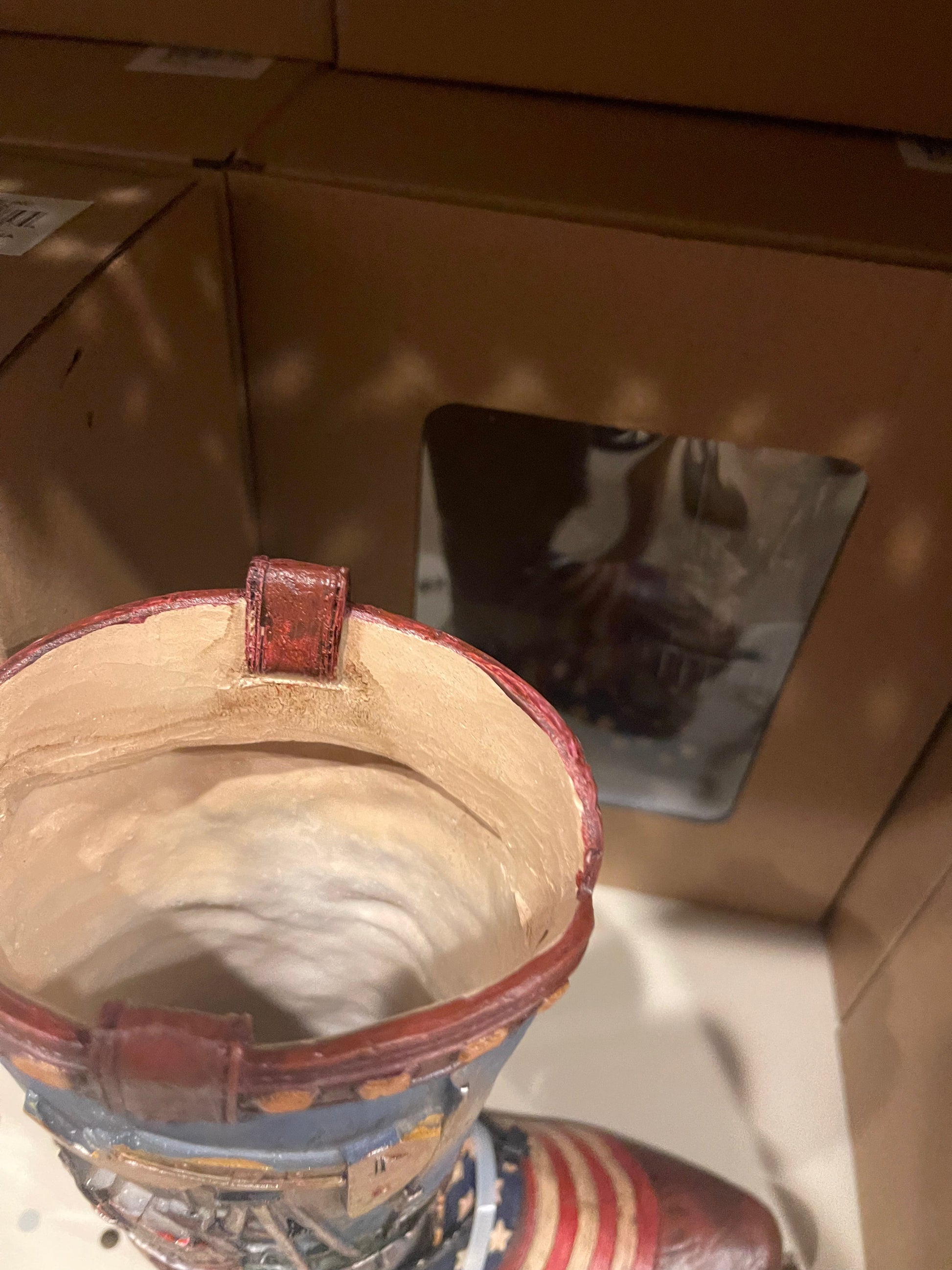 This stylish Oil Rig Americana Boot Vase is the perfect way to add a touch of rustic style to your home. Crafted from high-quality resin, the 9x7" vase is sure to be a conversation starter. Display your favorite flowers or greenery in this statement-making piece.
