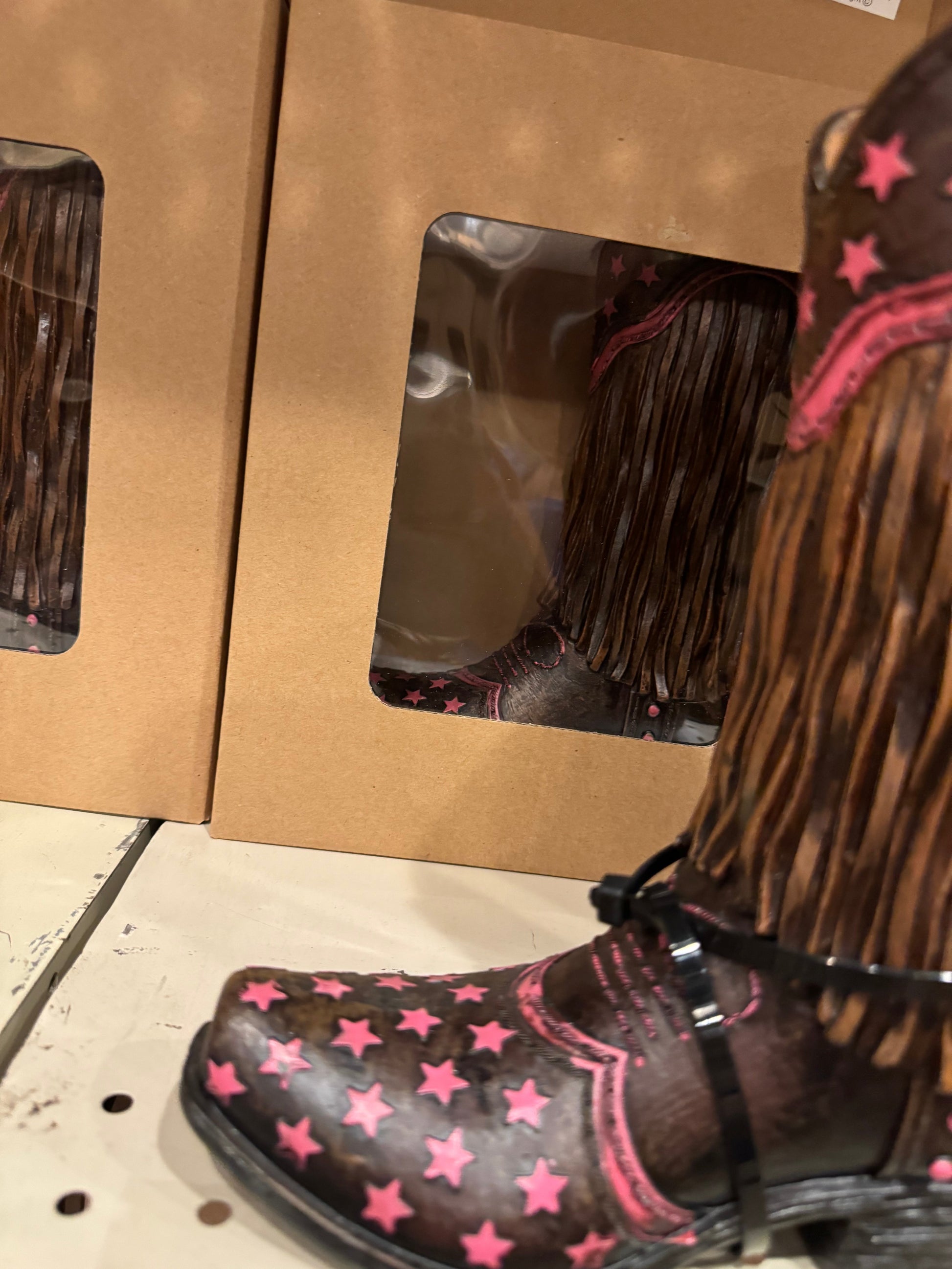 This Pink Fringe Star Boot Vase is a stylish and modern addition to your home decor. Made of durable and high-quality resin, this boot-shaped vase measures 9x7.5x3" and will add a unique touch to any room. Perfect for displaying your favorite flowers or as a standalone statement piece.