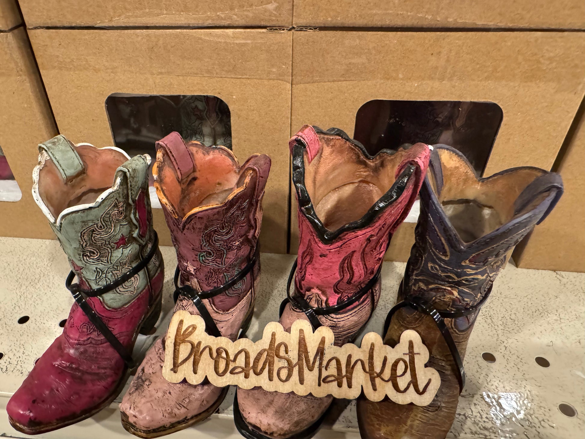 These 4 resin boot pen holders are perfect for organizing your writing instruments. With a size of 4.25x3.75 inches each, they provide ample space for your pens, pencils, and markers. Made of durable resin, these holders make a functional and stylish addition to any desk or workspace.