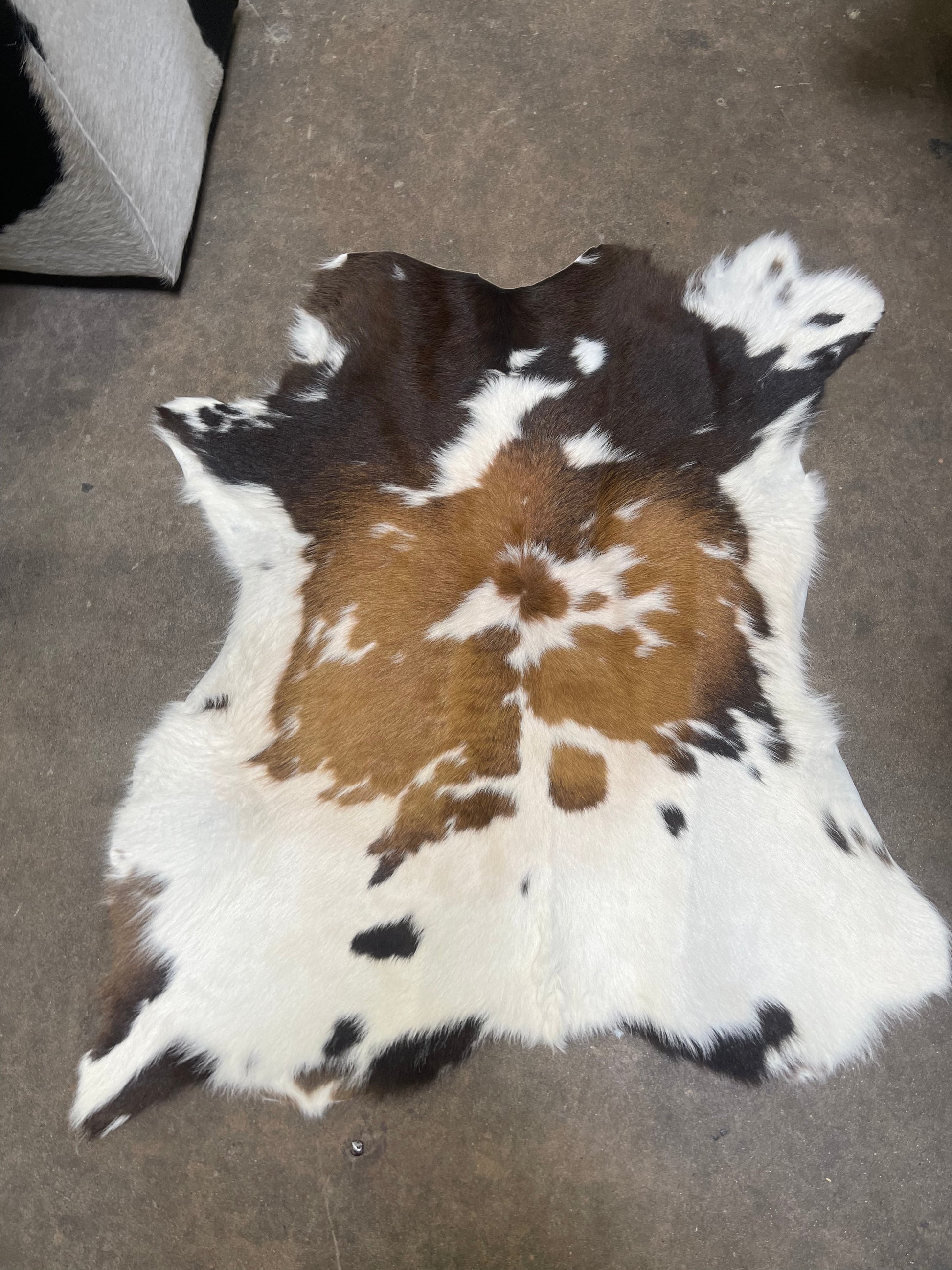 Enhance your space with our hand-selected Tricolor Calf Cowhide Rugs. Made from authentic Brazilian cowhide, each rug is approximately 3' and adds a touch of luxury to any room. Elevate your home decor with these unique and high-quality rugs.