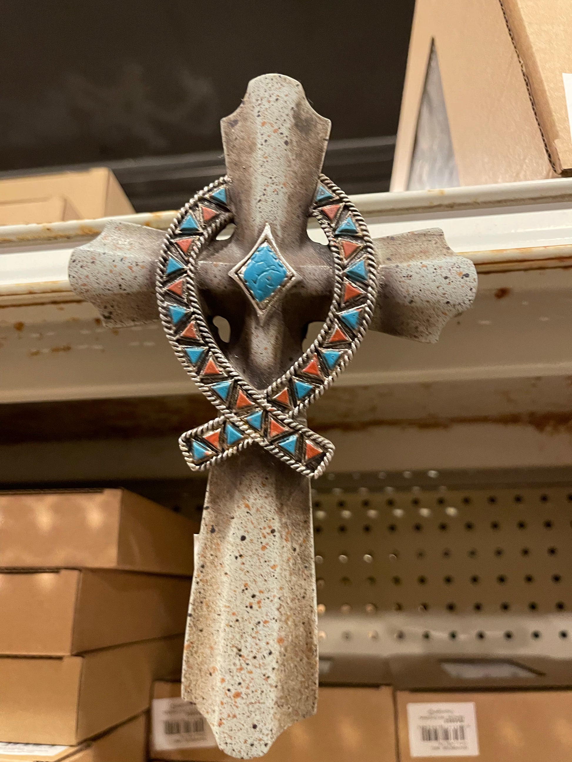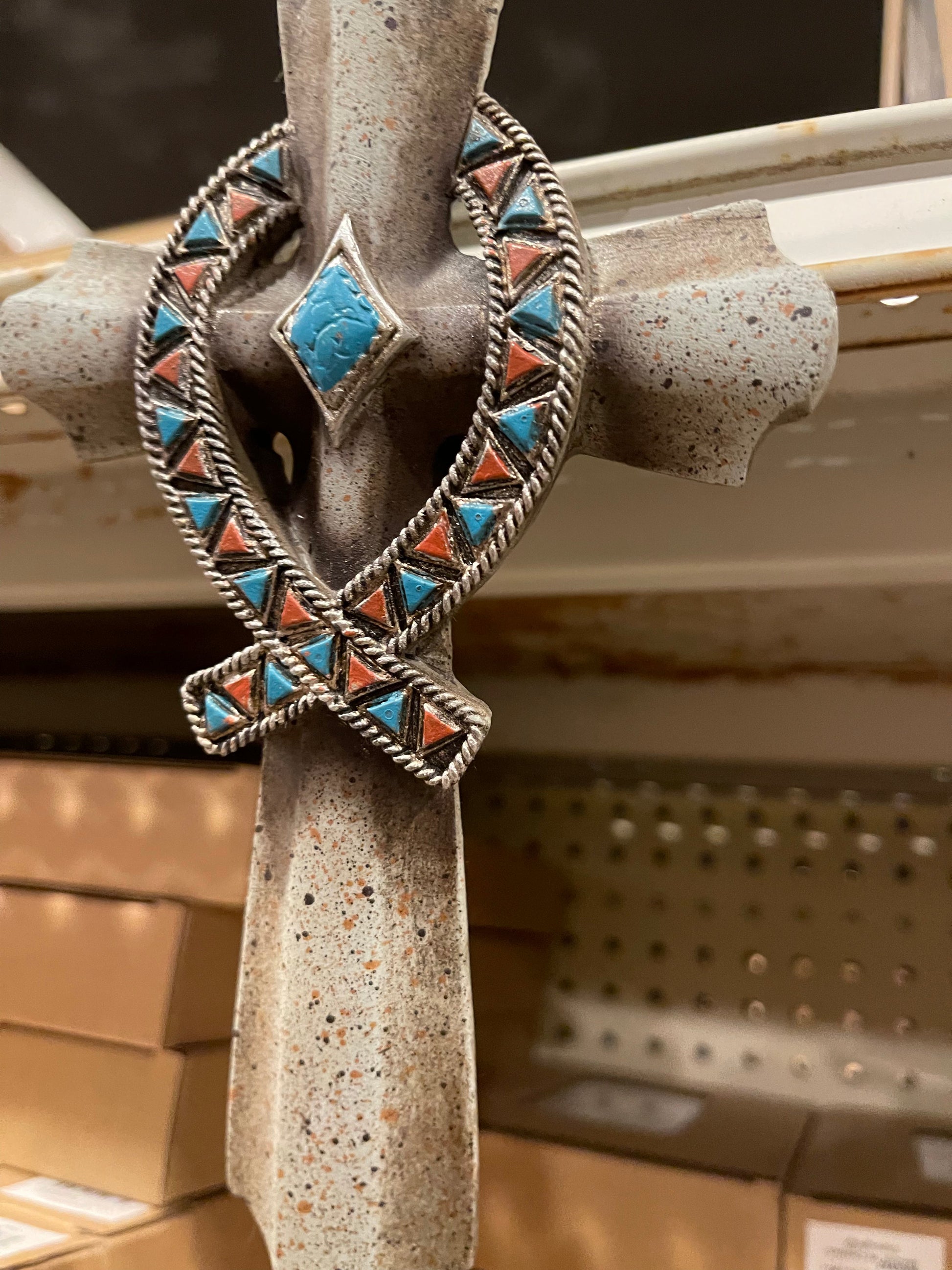 Expertly crafted from sturdy resin, this Turquoise Stone Fish cross beautifully combines religious symbolism with oceanic inspiration. Measuring 8.5x5 inches and featuring a convenient claw tooth hanger on the back, this unique piece is the perfect addition to any home decor.
