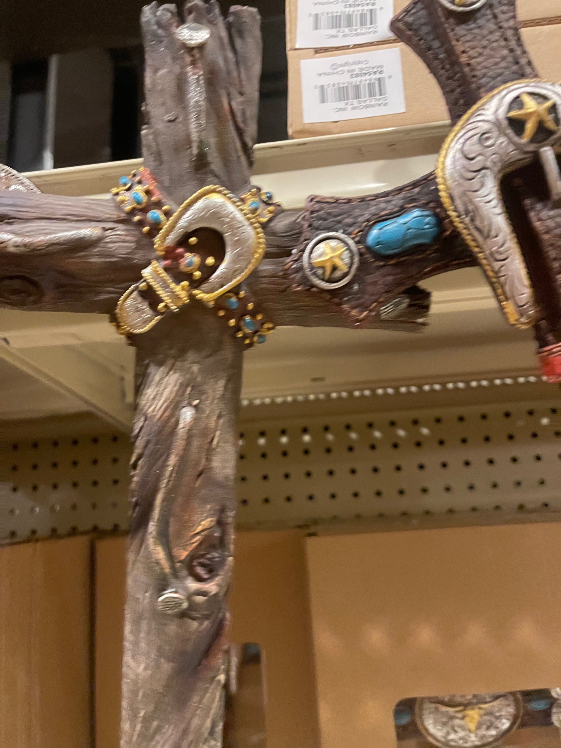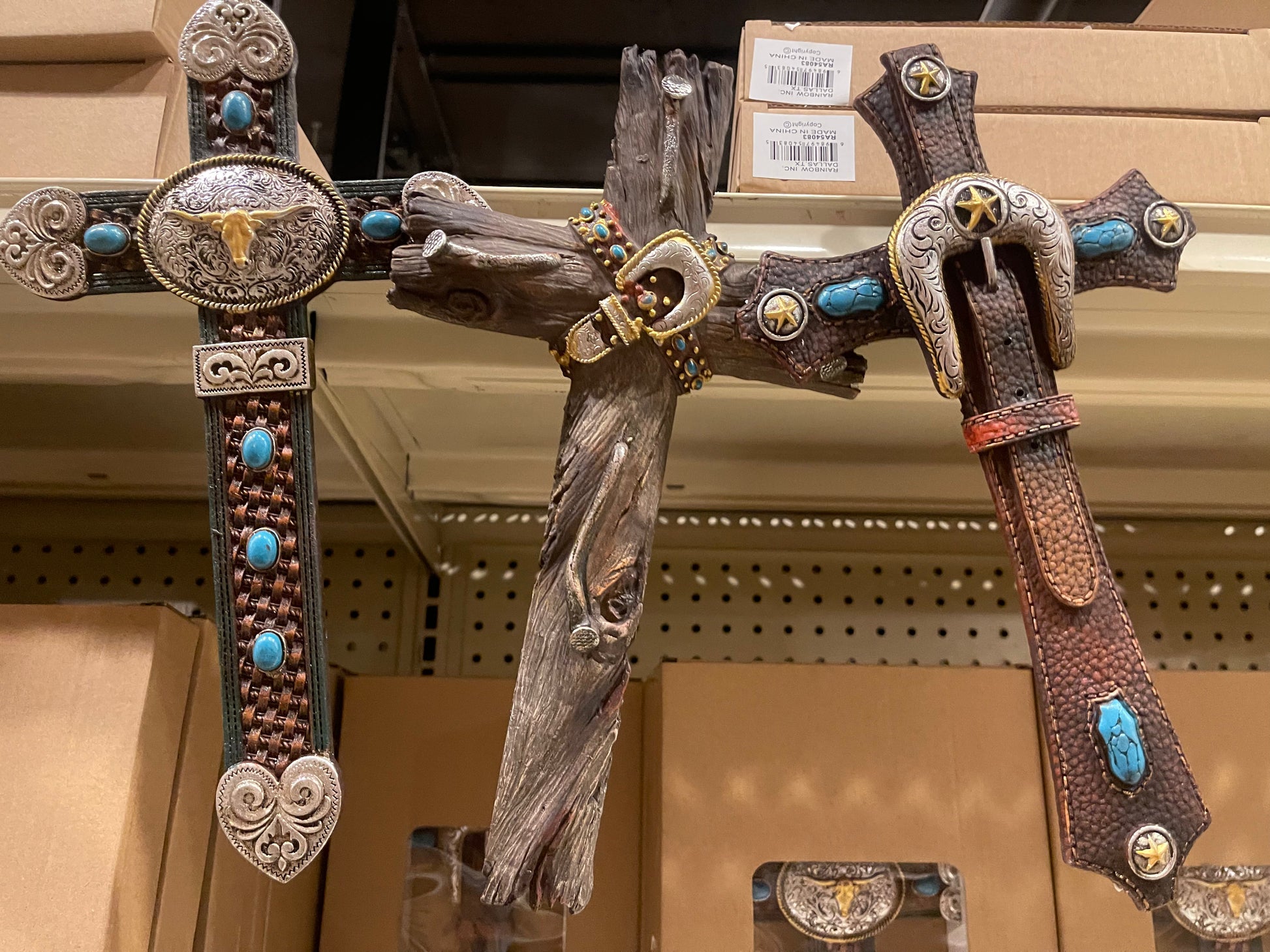 Expertly crafted from resin, this set of 3 crosses are the perfect addition to any western belt buckle. Measuring at 12.25"x6.75", the intricate design and durable material make for a stunning and long-lasting accessory. Elevate your style with this unique and timeless set.