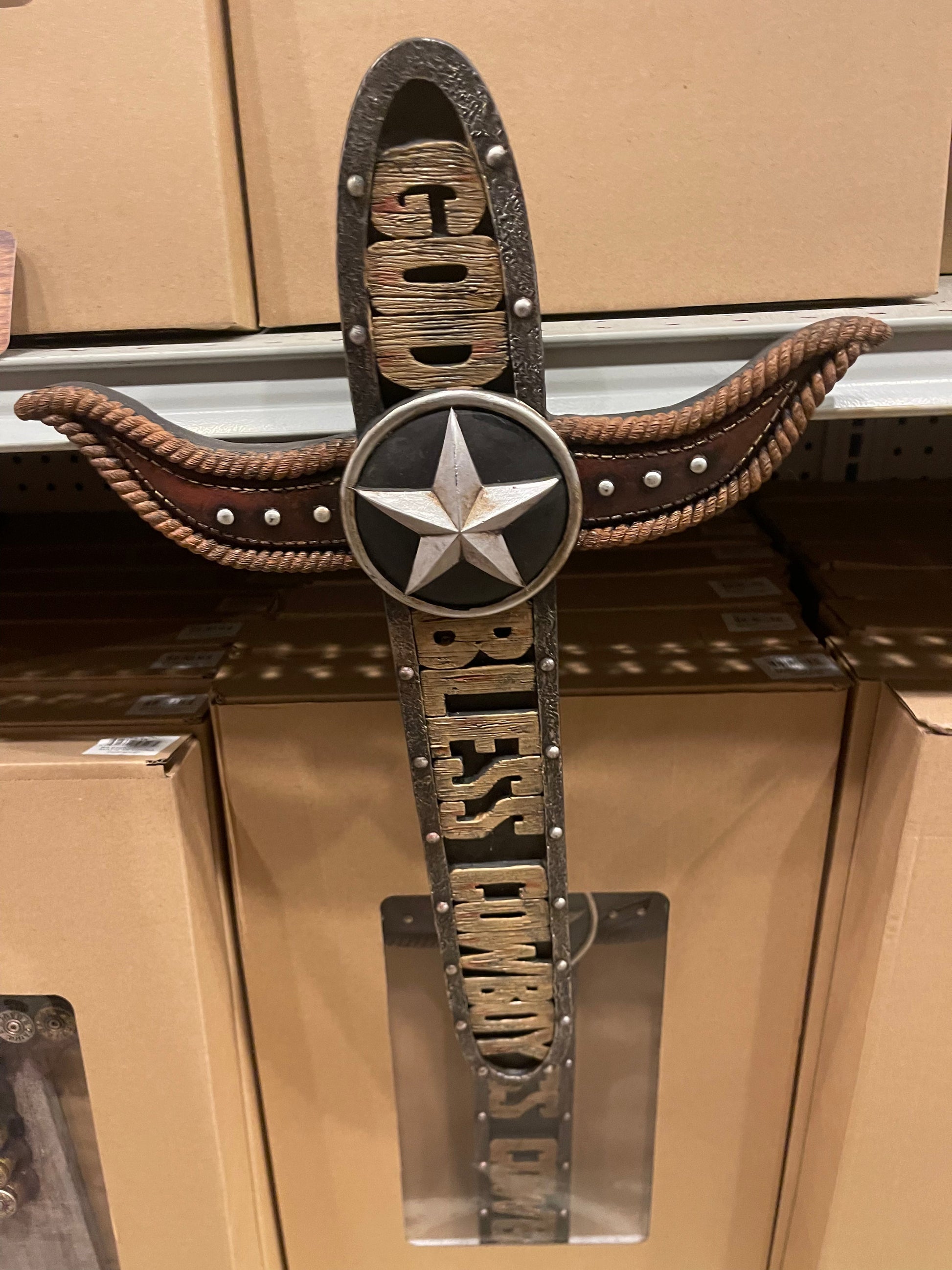 This resin cross features a claw tooth hanger for easy installation and measures 20”x12”. Perfect for displaying your faith and adding a touch of western charm to your home decor.