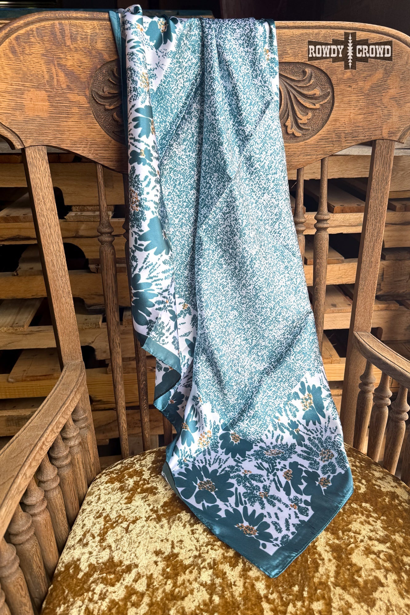 We all know you have to get away from the cities to see all the stars! The Western Stars Wild Rag is a timeless design with white and teal speckles and a floral/starburst border.